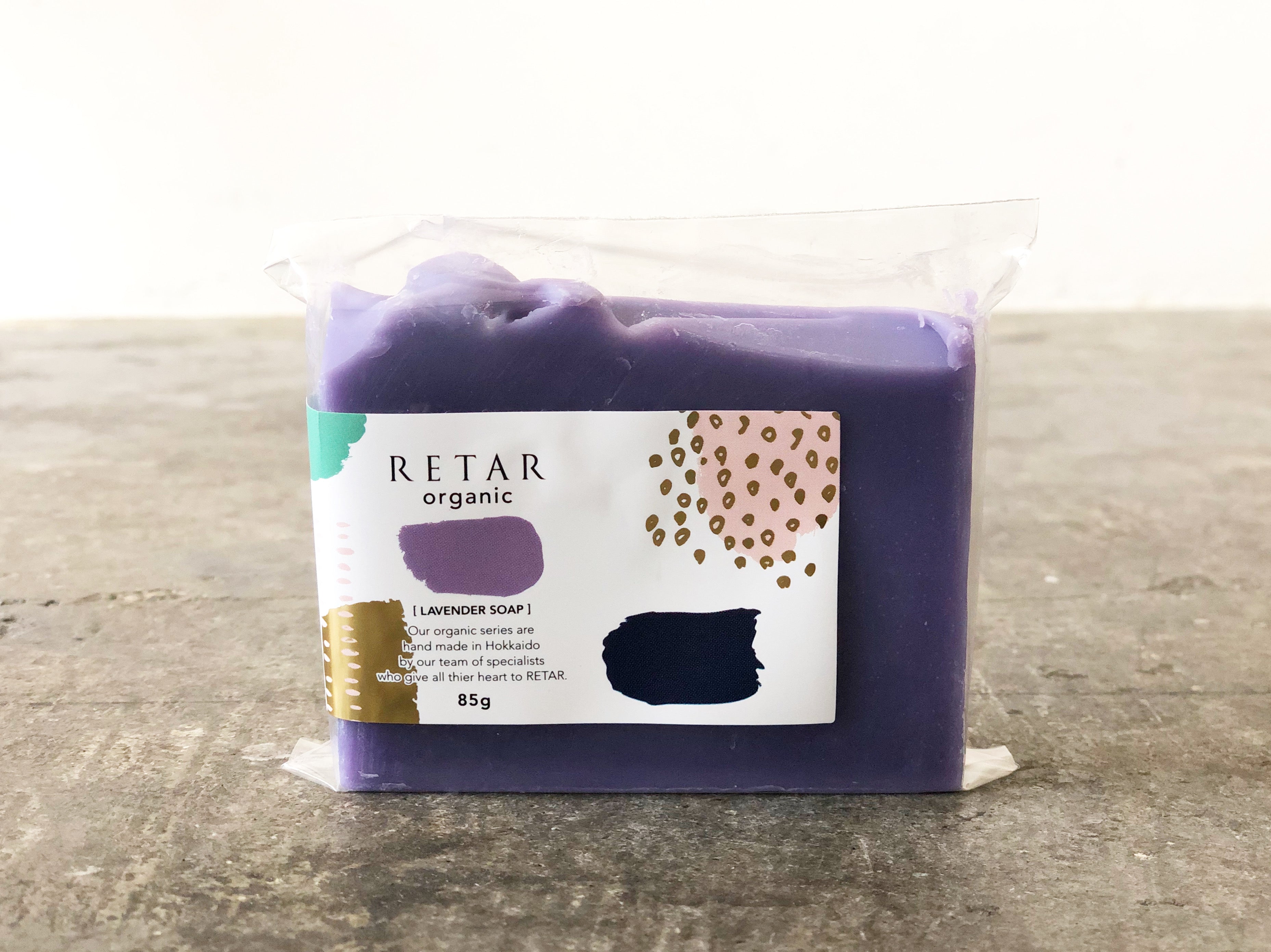 富良野のラベンダーの香りの石鹸です。ハンドメイド製造している石鹸はコールドプレス製法を採用し、材料に熱を加えず、低温でゆっくりと作られるため、植物油などに含まれる良質な成分が壊れにくく石鹸に閉じ込めることができます。